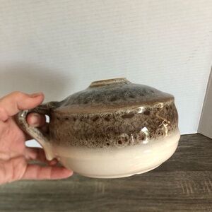 Enhance your home decor with this rustic brown ceramic pottery oil lamp. Its earthy tones add a touch of warmth to any space. Does not include any of the parts needed to make it into a lamp, this is the base only and you would need the other parts. Could still be used on a shelf as decor or repurposed into something else.