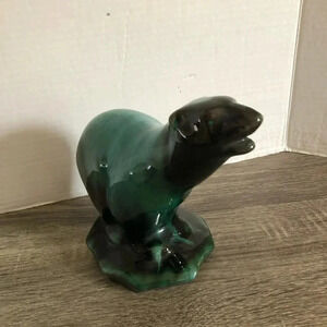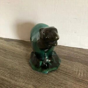 Lovely teal and black drip glaze bear. Made by Blue Mountain Pottery in Collingwood, ON. The company has since closed its doors so this is one of the remaining bears in existence.