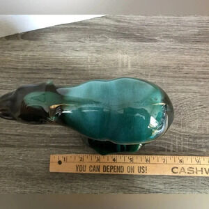Lovely teal and black drip glaze bear. Made by Blue Mountain Pottery in Collingwood, ON. The company has since closed its doors so this is one of the remaining bears in existence.