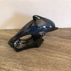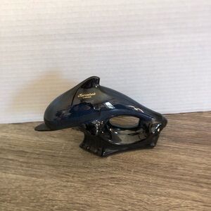 Vintage blue drip glaze ceramic dolphin figurine. Made by Blue Mountain Pottery, sold as a collectible item from Marineland. Original Marineland sticker still attached.