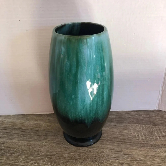 Lovely black and green drip glaze pottery vase. Traditional Blue Mountain Pottery redware base. Dates to around the 1980’s I believe as this is a newer version of their stamp/mark on the bottom.