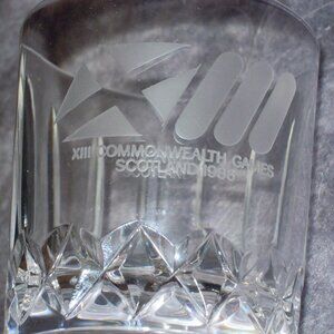 Four unused, still in the original box, drinking glasses. Two glasses have a symbol and the words "XIII Commonwealth Games Scotland 1986" and the other two glasses read: "Edinburgh Commonwealth Games 1986".