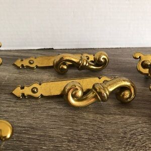Made in Canada. Unknown exact date but 20th century. Likely 60’s. Unknown exact metal content, they look brass but they may be plated or something. I’m not a cabinet hardware expert so if you know please let me know!