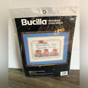 Vtg Bucilla Stamped Cross-Stitch Kit - Birth Announcement