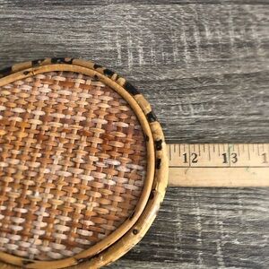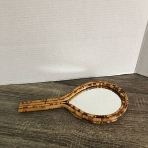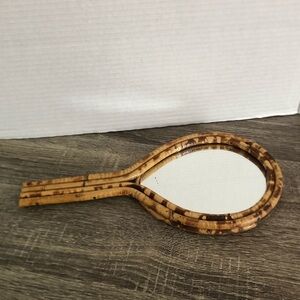 Vtg Burnt Bamboo Rattan Handheld Mirror