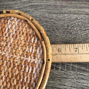 Vtg Burnt Bamboo Rattan Handheld Mirror