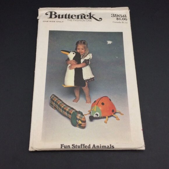 Vtg Butterick 3958 Fun Stuffed Animals Pattern Uncut Ladybug Penguin Weiner Dog