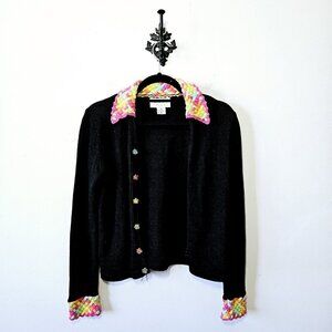 Vtg Cache Cardigan Glass Floral Buttons Size S Silk Blend Sweater Y2K Artsy EUC