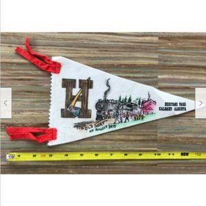 Vintage felt pennant from Calgary's Heritage Park Pioneer Days. 11" long x 6" at wide end. Good vintage condition, minor marks to felt fabric. The pictures show the actual item that you will receive.