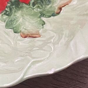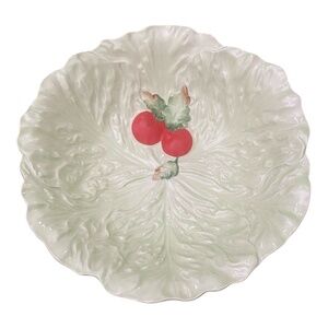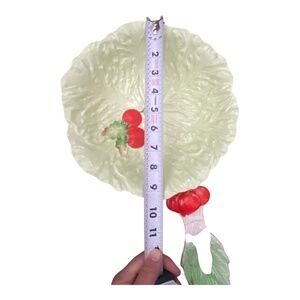 Design: Features a finely modeled lettuce leaf texture with a majolica glaze and two red tomatoes as decoration.