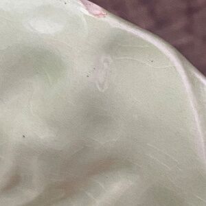This bowl has 2 small chips along the edge…these can be seen in the last three pics. Also some discolouration along the bottom feet. Also some light crazing up close…hard to see