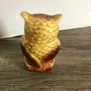Vintage ceramic owl with googly eyes. Front says “everything thrives on love”. Single pepper shaker only, missing his mate.