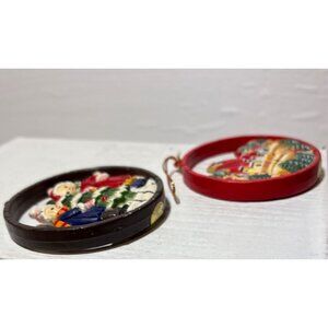 Vtg Christmas Cut Out Ornaments Set Of 2 Children & Village Scenes 2 Sided 70's