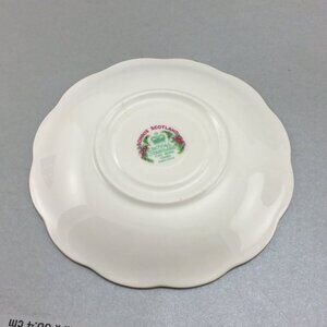 Vintage Clan Campbell teacup and saucer by Royal Standard. From the 'Bonnie Scotland' line. Features a Campbell tartan and crest, as well as Scottish heather.