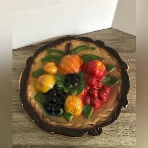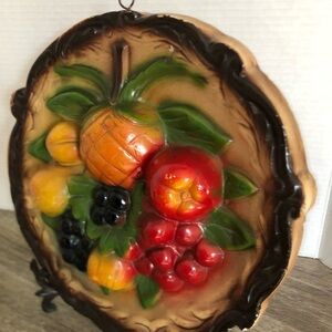 Vtg Colourful Fruit Chalkware Wall Plaque