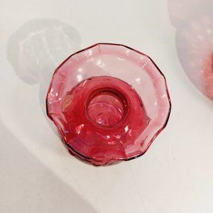 Add a touch of vintage charm to your home decor with this beautiful Cranberry Art Glass Vase. The vase features a heart swirl pattern and ruffled edges that adds an elegant touch to any space. Measuring 5.5 inches in height, this vase is perfect for showcasing your favorite blooms or as a standalone decorative piece. Crafted in an art glass production style, this vase is a perfect representation of the heritage of the brand. The vibrant cranberry color adds a pop of color to any room, making it an ideal addition to your collection. This vintage vase is a must-have for any glassware enthusiast, and it makes for a great gift for any occasion. N/S pet friendly home. Please feel free to visit our store for similar items. Thx for looking.
