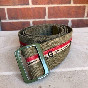 Vtg D&G Dolce & Gabbana Logo Tape Canvas Belt Kaki Y2K Streetwear Sz 95 (M/L)