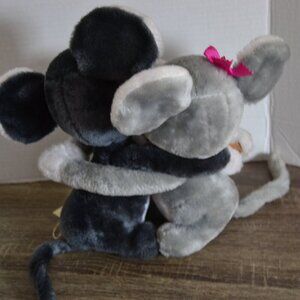 Made by R Dakin and Company, Eeny and Meeny Mouse are just adorable. Made in Korea. These mice have Velcro on their hands so they securely hug one another or you can separate them if you wish. Hang tag on the pair is the original one.