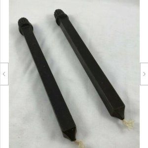 Set of 2 dark brown square 10" candlesticks by Colonial Candles of Cape Cod. Color is a very dark chocolate brown (not black). Very nice vintage condition, minor marks on the wax from storage, still has the "CCCC" logo sticker on one side. Approx. 5/8" thick. Candles only, no candle holders included.