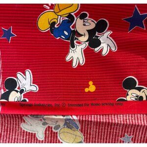 Vtg Disney Mickey Mouse Cotton Fabric Red Stars 18 X 44" Sewing Crafts Quilting