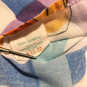 This flat sheet is pre-owned and in used condition. There are a couple of black stains on the sheet. There are some loose threads and pilling. Please see all photos for exact item.