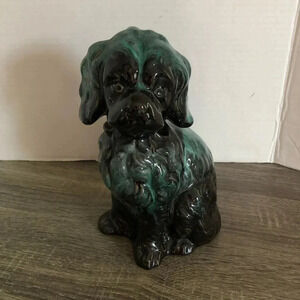 MCM cocker spaniel dog in a green and black drip glaze finish.