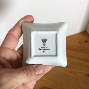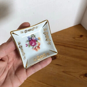 Hand painted ring dish, likely made from porcelain. Very delicate little piece. Can be used for rings or anything really.