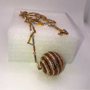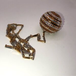 Vtg FAC Fifth Ave Collection Two Tone Gold Silver Rhinestone Hollow Ball Chain