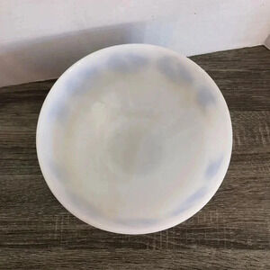 Lovely vintage milk glass serving bowl with blue floral pattern. Large enough for a casserole.