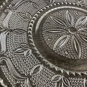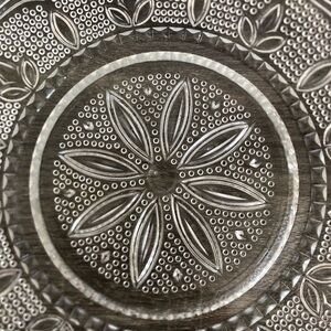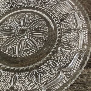 Enhance your dining experience with this elegant clear glass platter. Perfect for any occasion, its intricate design adds a touch of sophistication to your table setting. Made by Federal Glass. Mid twentieth century, this would be considered a depression glass pattern.