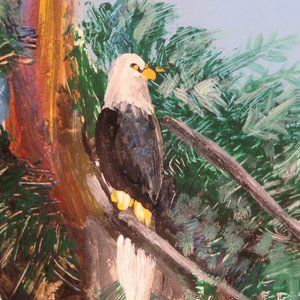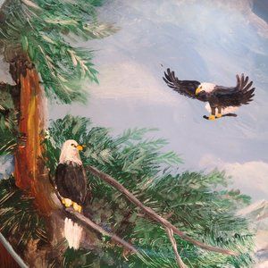 Vtg Federal Milk Glass Plate Handpainted Eagles Scene (198C)