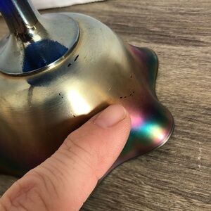 Good preloved condition- no cracks or chips. There are three smaller scratches on the iridescent surface which show the cobalt underneath (see photos please).