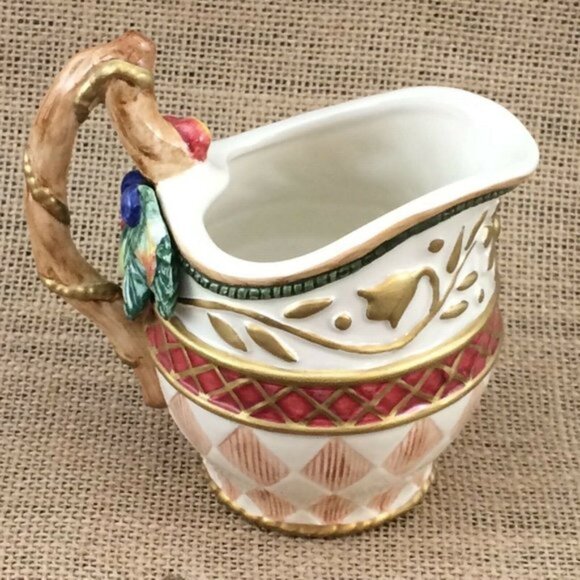 Vtg Fitz Floyd Jolly Ole St Nick Christmas Classics Creamer Holly Leaves Berries