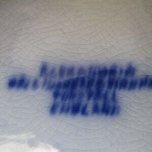 Unable to read the label under the piece. It measure 13" diameter. In very good condition, no chip no crack.