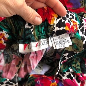 Brighten your wardrobe with this vibrant floral A-line skirt. Perfect for any occasion, this skirt features a stunning mix of colors that will make you stand out. Florals, animal prints and leaves make up this lovely pattern. Made in Sri Lanka. 100% rayon. Very soft and lightweight. Pockets and stretchy waist band.