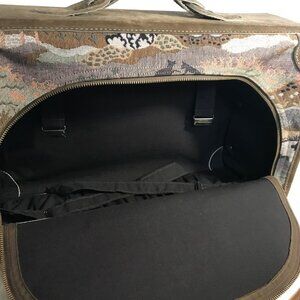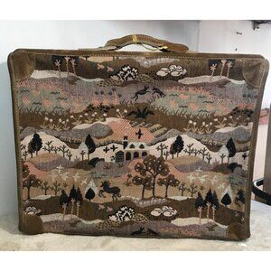 This vintage luggage set features a scenic tapestry design with suede accents, combining both durability and style. An excellent choice for travelers seeking a distinctive and reliable suitcase set.