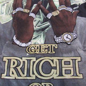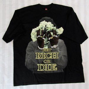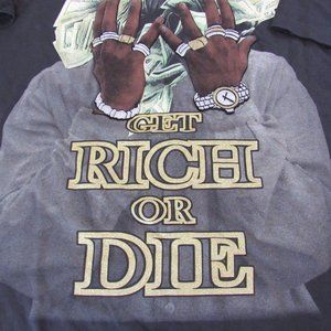 Vtg Get Rich or Die T-Shirt 3D Men's 4XL Velvet Street Wear Hip Hop Rap Tee RARE