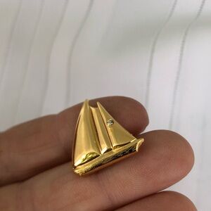 Vtg Gold Tone Sailboat Brooch