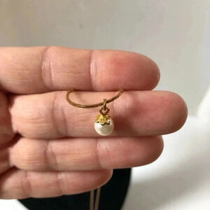 Marked Korea on the clasp. Goldtone vintage chain likely dates to the 1970’s/1980’s but without a manufacturer mark there is no way to know for sure. Pearl pendant with a little goldtone cap looking thing that attaches to the necklace. One of the little loops on the cap is missing other than that it is in very good preloved condition.