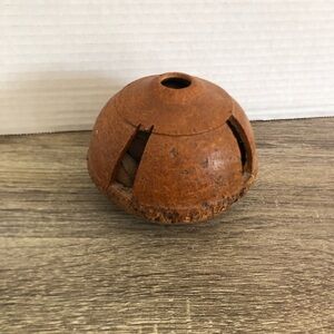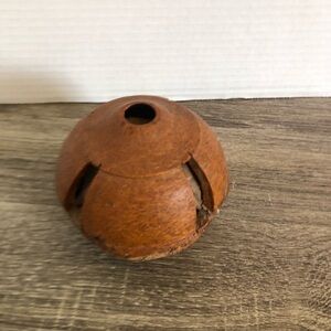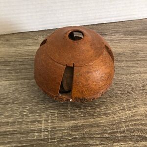 Based on my research this is possibly a Brazil nut pod carved into a bell/rattle. Rustic folk art decor piece. Very cool live edge finish, absolutely a conversation starter!