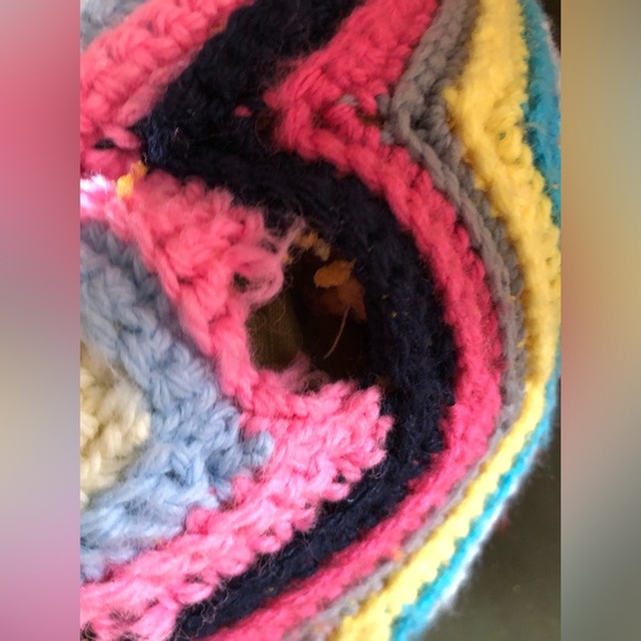 Add a vibrant touch to your home with this multicolour knit pouf pillow. Perfect for any room, it combines style and comfort effortlessly. Cottage/grannycore and boho vibes.