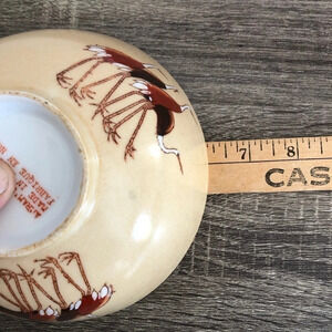 Made in Hong Kong, this sturdy porcelain bowl features hand painted crane birds in brown and orange tones.