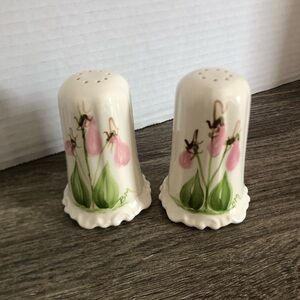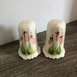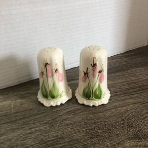 Gorgeous hand painted salt and pepper shakers. Feature the lovely provincial flower of Prince Edward Island, Lady’s Slipper.