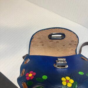 Vtg Hand Tooled Purple Leather Painted Mini Purse, Made in Mexico, Flower Purse