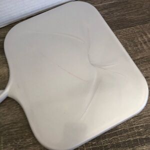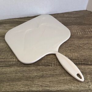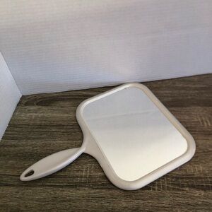 Elegant handheld mirror with a sleek grey frame. Perfect for daily use. I believe this is a type of acrylic, it’s sort of a grey and silver swirl pattern if you look closely. I believe this dates to the 90s.