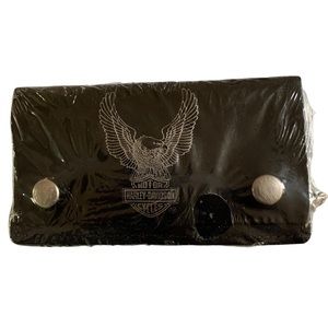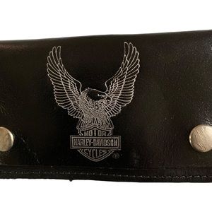 Vtg Harley Davidson Motorcycles Black Genuine Leather Chain Wallet Licensed USA