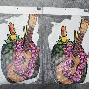 Vtg Hawaii Luau Hula Dancer 20” Cutouts Lot of 2 Beistle Ukulele Pineapple 1979. Light creases on a few areas, both are sealed brand new with some light shelf wear.