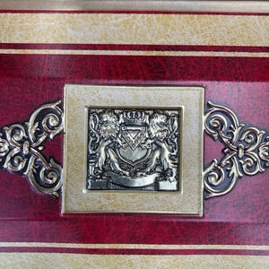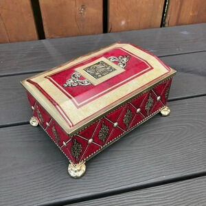 Super cute and ornate tin box. Good condition, a couple of minor scratches but nothing major.