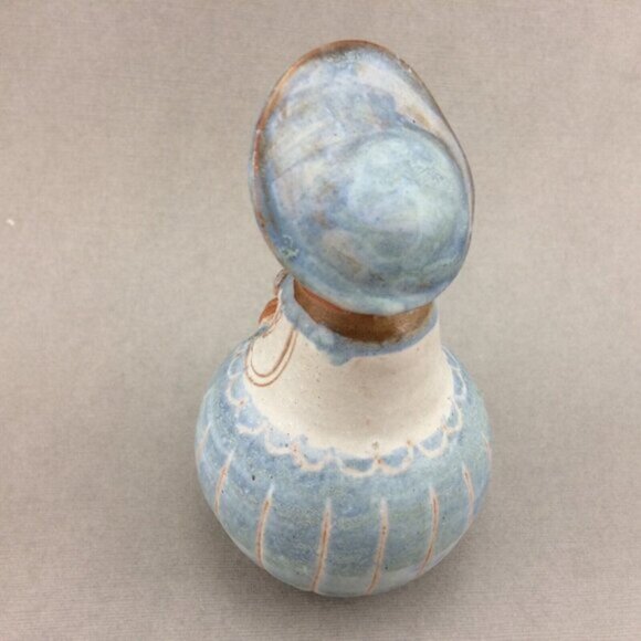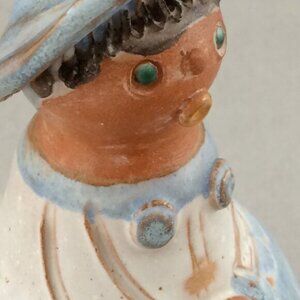 Vtg Ilona Kiss Rooz MCM Signed Ceramic Woman Figurine Blue Hat Face on Chest 5"