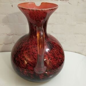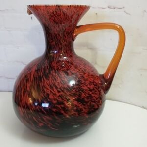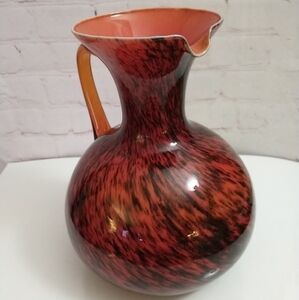 Vtg Italian Empoli Cased Art Glass Red Black Swirl Amber Handle Lrg Pitcher Jug